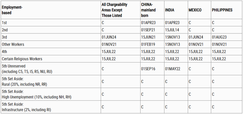 India: Slight advancement in priority dates, but backlog remains significant due to high demand.