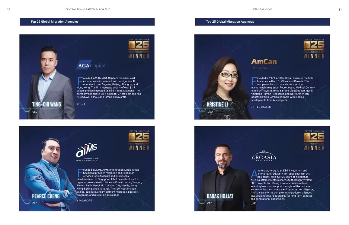 ArcAsia Advisors is an EB-5 investment and immigration advisory firm specializing in U.S. residency. With over 20 years of experience, ArcAsia offers investors access to thoroughly vetted EB-5 projects and strong developer relationships, ensuring hands-on support throughout the process. Known for its transparency and rigorous due diligence, ArcAsia transforms complex immigration challenges into straightforward strategies for long-term success and generational opportunity.